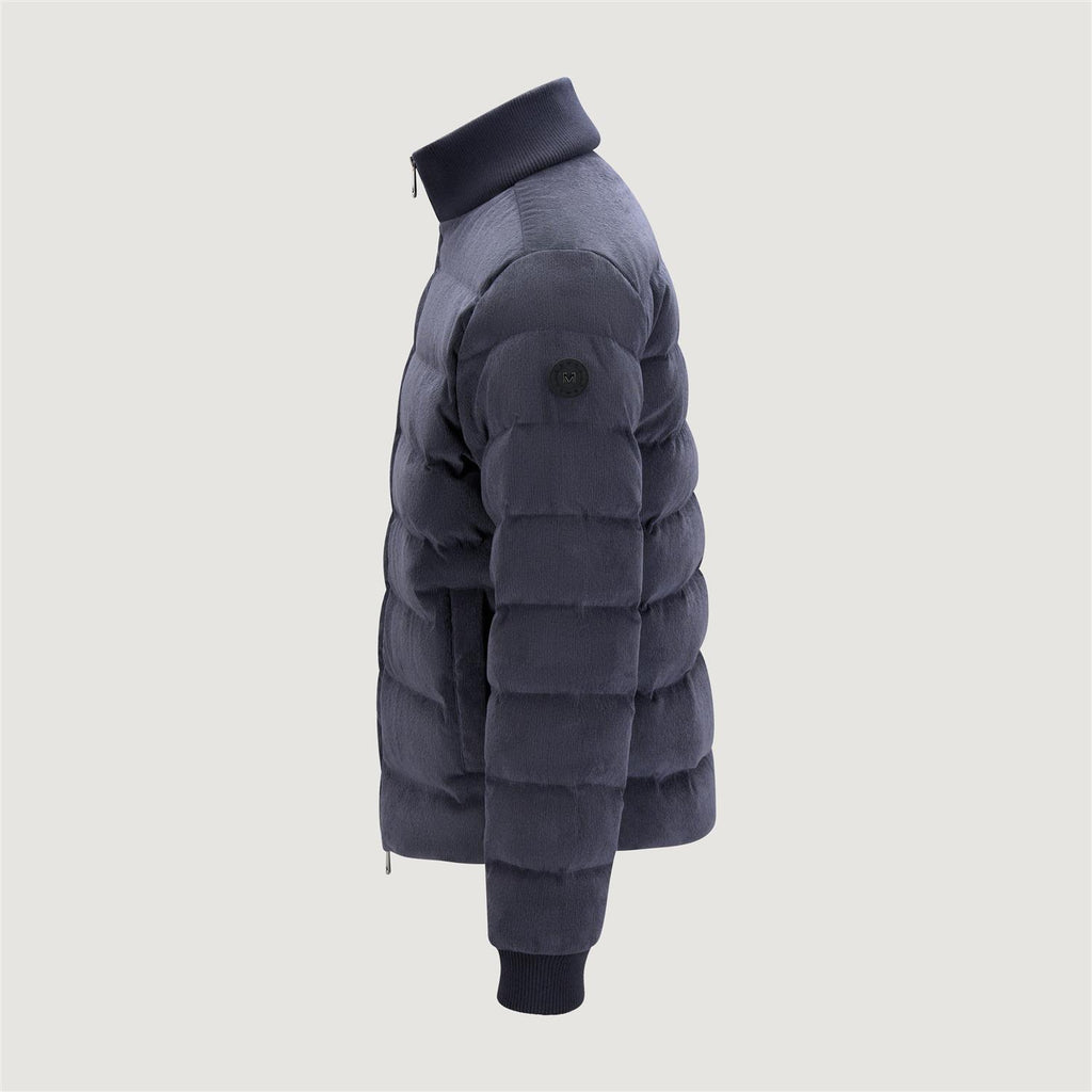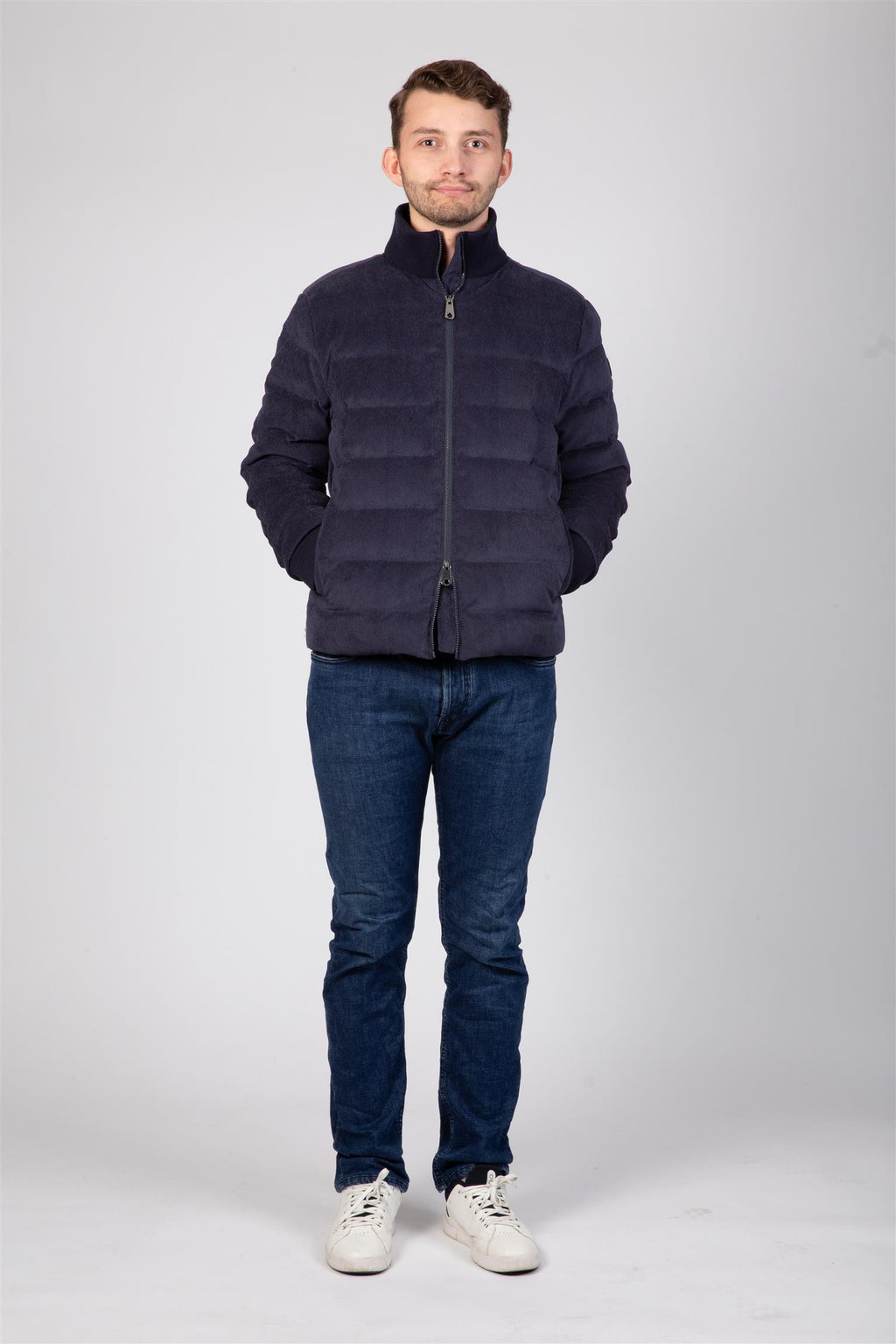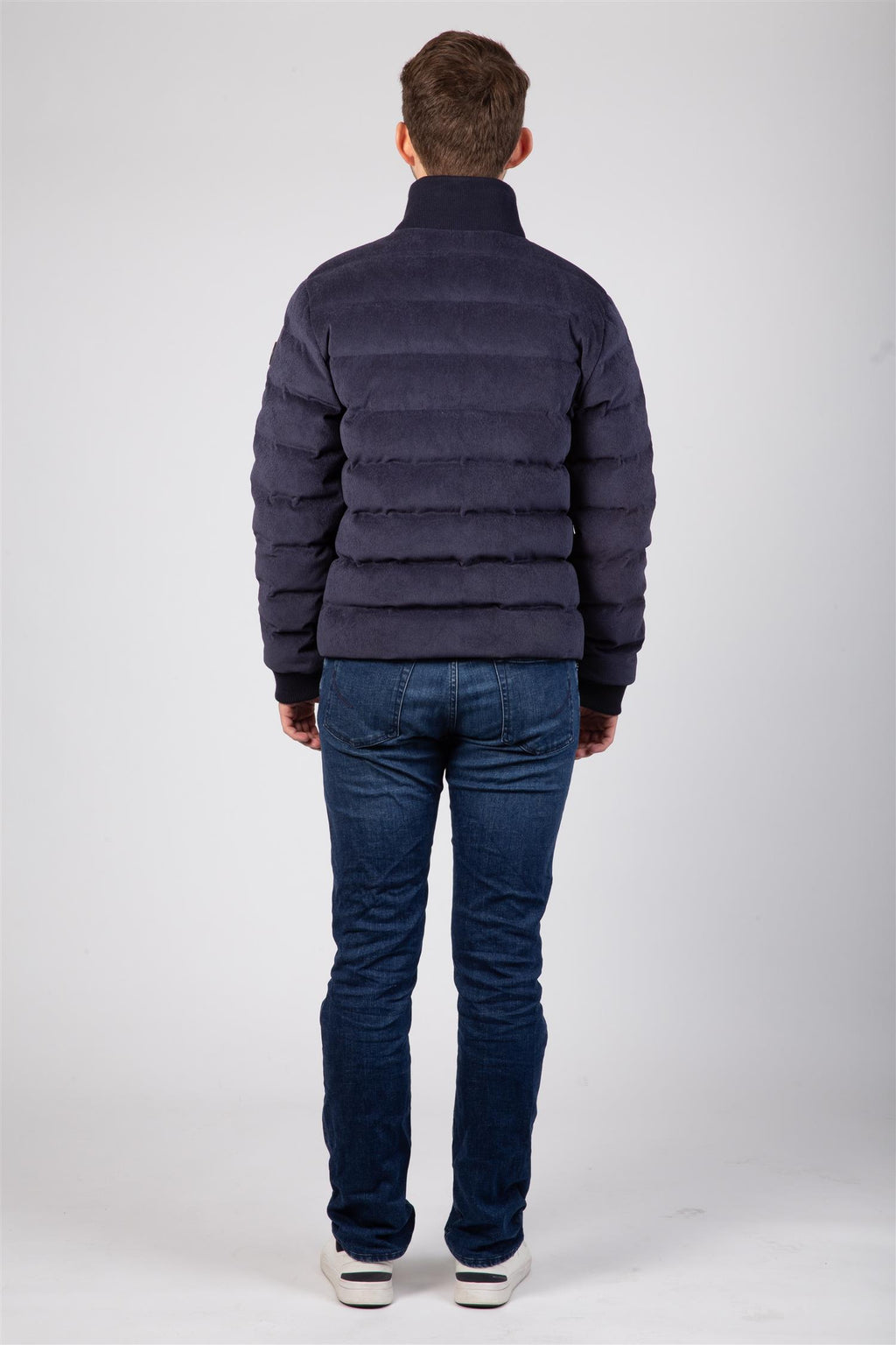Monel Jacob Corduroy Jacket – En marineblå dunforet jakke i kordfløyel. Uten hette, men med ribb i ermer og hals for en komfortabel passform. Utstyrt med 2-veis glidelås og pene detaljer som gir et stilrent, men sporty uttrykk.
