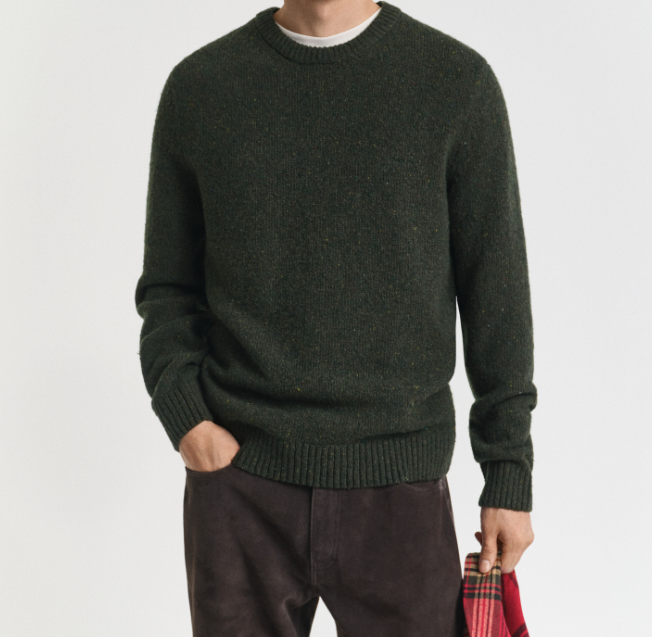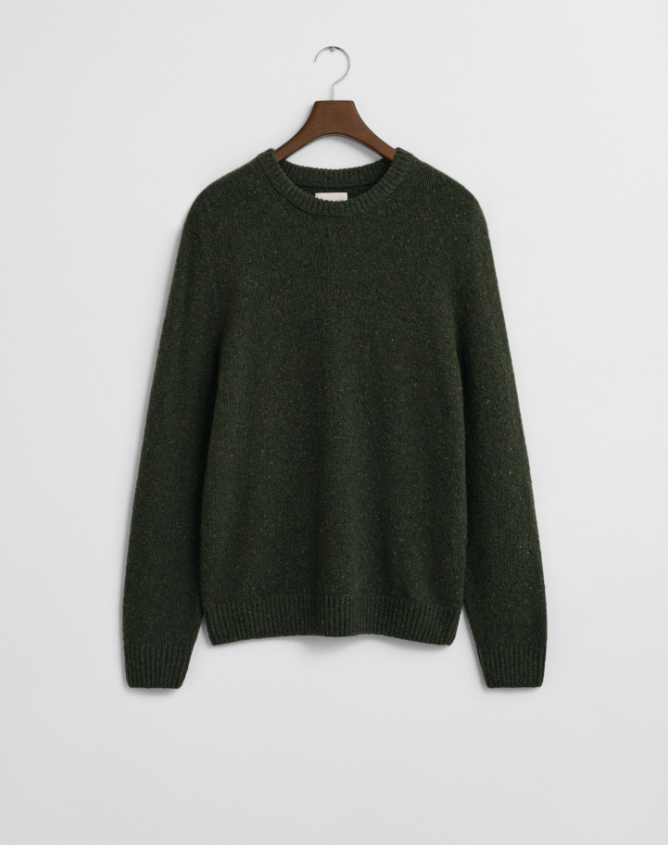 Strikkegenser fra Gant i en eksklusiv italiensk ullblanding med nepsgarn som gir en melert, spettet effekt. Genseren har regular fit, klassisk rund hals og ribbestrikkede avslutninger. Et tidløst og stilfullt plagg med en moderne tekstur.