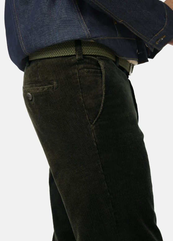 Stilren kordfløyelsbukse fra Meyer sin Active-serie, laget i en myk og slitesterk blanding av bomull, modal og elastan. Den smalstripede strukturen gir et klassisk og elegant uttrykk, mens den elastiske kvaliteten sørger for utmerket komfort og bevegelsesfrihet. En allsidig modell som fungerer like godt til hverdags som til pene anledninger.
