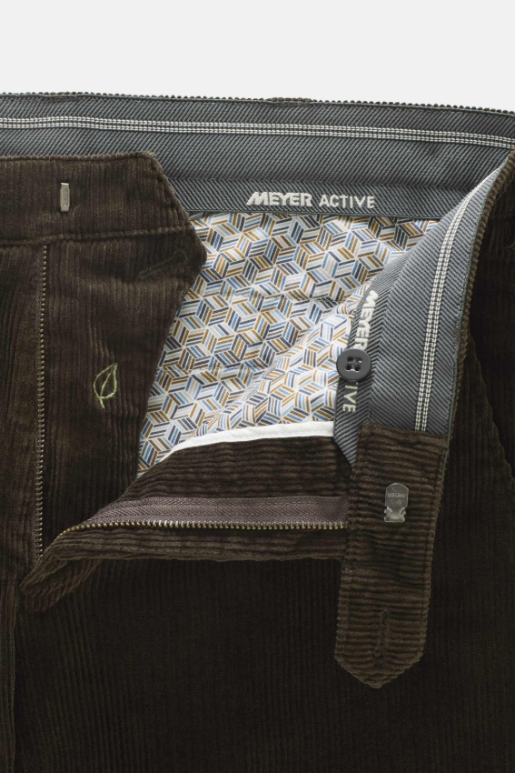 Stilren kordfløyelsbukse fra Meyer sin Active-serie, laget i en myk og slitesterk blanding av bomull, modal og elastan. Den smalstripede strukturen gir et klassisk og elegant uttrykk, mens den elastiske kvaliteten sørger for utmerket komfort og bevegelsesfrihet. En allsidig modell som fungerer like godt til hverdags som til pene anledninger.